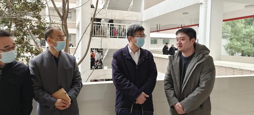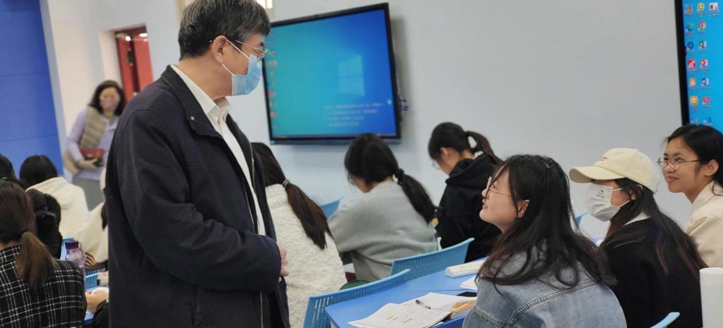 校黨委書記邊境(中)與任課教師交流。戴迎峰 攝