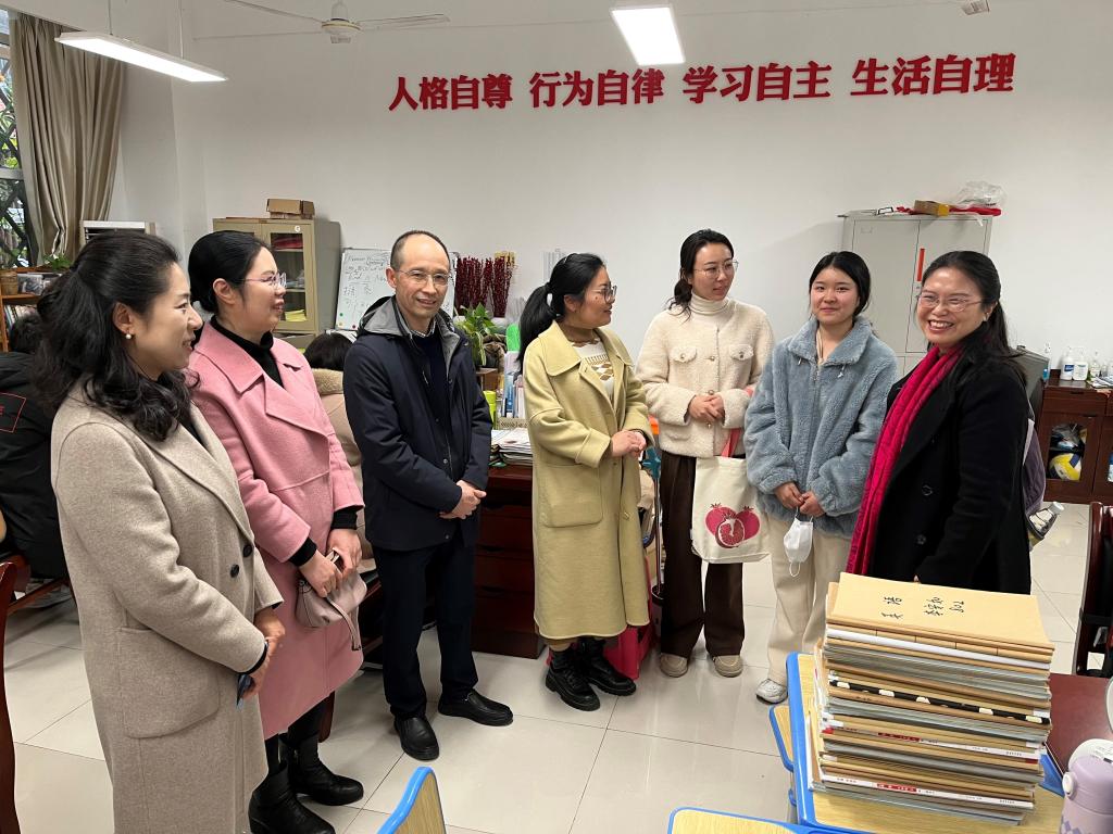 12月5日下午,外語學院院長易立新一行前往光谷實驗中學慰問參加實習的2022級學科教學(英語)研究生和實習指導教師。