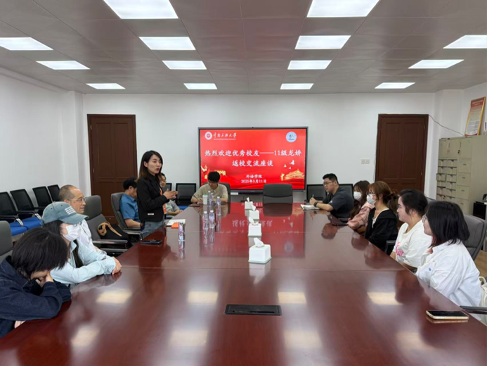 為拓寬學生職業發展視野,深化校友育人作用,5月11日,學院邀請2011級校友、中南民族大學深圳校友會秘書長龍嬌女士在10-525開展校友返校交流座談會。學院黨委書記李春雷,院長易立新,學工辦副主任兼2022級輔導員王斌,2024級輔導員藍志標及各年級學生代表參與座談。座談會由王斌主持。