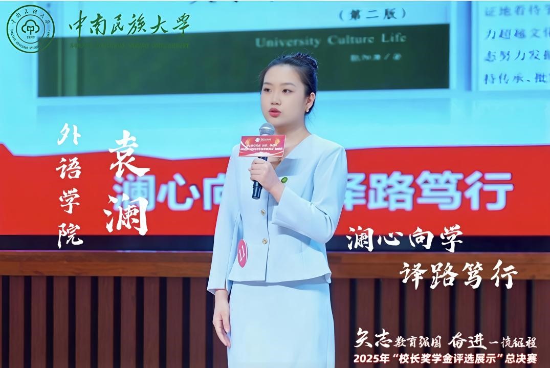 近日,我校2025年度校長獎學金總決賽圓滿落幕。經過激烈角逐,外語學院翻譯專業(yè)2022級本科生袁瀾憑借優(yōu)異的綜合表現脫穎而出,成功榮獲校長獎學金。此外,袁瀾已保送至復旦大學繼續(xù)攻讀碩士研究生,展現了外語學院學子卓越的成長潛力和全面發(fā)展的優(yōu)秀素養(yǎng)。