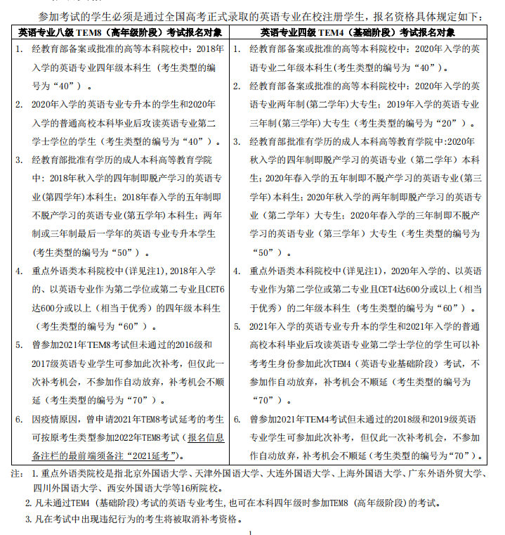 2022年TEM8/TEM4報名截止日期為2021年12月3日,逾期不辦理。