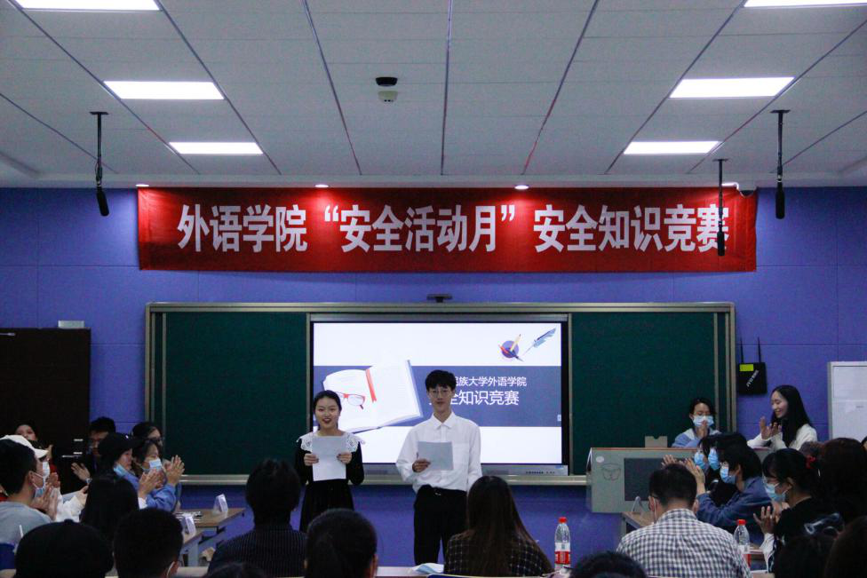 11月14日下午,我院“安全活動月”安全知識競賽決賽于十號教學樓順利開展。本次活動以“時時講安全,事事重安全”為主題。外語學院本科生團委副書記張天之,外語學院學生會主席團成員王思琪、陳諾、馬逍出席本次活動。20級八支代表隊到場參賽。