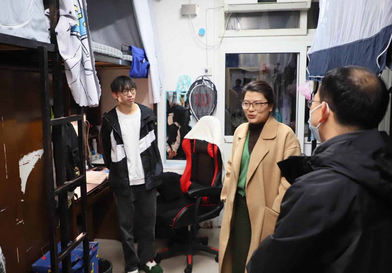 本著“圍繞學(xué)生,關(guān)愛學(xué)生,服務(wù)學(xué)生”的工作原則,12月13日晚上,國際合作與交流處黨支部書記、處長孫曉麗帶領(lǐng)支部黨員們主動、積極深入到學(xué)生生活中,來到學(xué)生宿舍看望“成長守望計(jì)劃”學(xué)生。