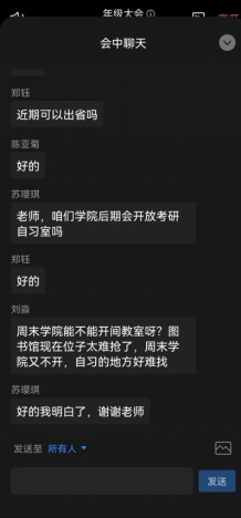 在本次會議中,陳老師主要強調四個內容。第一,安全問題。陳老師提醒同學們按照防疫要求,規范佩戴口罩,配合學校核酸篩查工作的開展,合理安排時間進行核酸檢測,并提醒同學們也要注意防范春季傳染病。第二,陳老師強調同學們要遵守校紀校規,服從學校疫情管控工作安排,非特殊情況不出校。第三,她還著重強調學生要預防電信詐騙,指出“害人之心不可有,但防人之心也不可無”,提醒同學們增強防電信詐騙意識,通過下載“國家反詐中心”APP,防范被詐騙,如遇到詐騙時第一時間上報學院,向輔導員和班導師尋求幫助。第四,學業規劃問題。陳老師強調,現階段是我們大學生涯的關鍵節點,要做好學業規劃,利用身邊的資源,為自己的人生發展“助力”。如有需要可與學院取得聯系,進行溝通交流。最后陳老師也對同學們提出的關于學校后期是否開放考研自習室、核酸檢測等問題進行了一一解答。