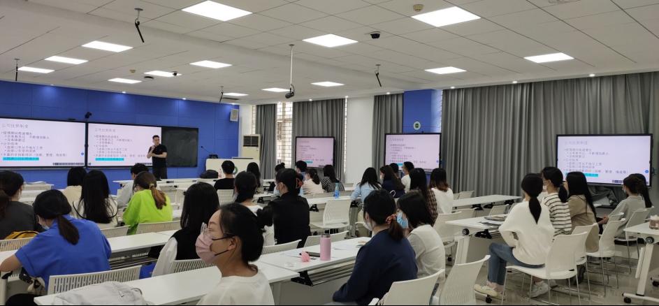 大健云倉宣講人介紹了公司情況,針對招聘崗位、薪酬福利、公司制度優勢等方面進行了詳細的講解。負責人提到,公司對英語、日語等語種的跨境電商產品經理方向管培生需求較大,也與學院所開設專業相符,同學們可以積極嘗試;同時,部分其他崗位也適合同學們專業學習的特點。會后,負責人對同學們的問題進行了解答。