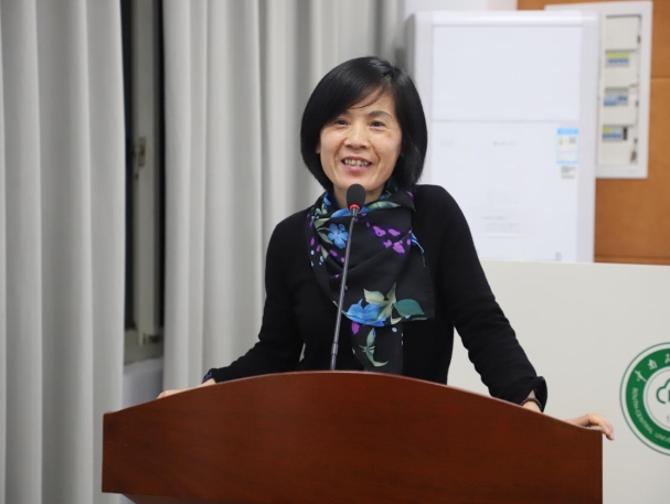 湯茜老師發言。 朱杰云 攝 經過此輪淘汰賽,10名參賽者進入下半場的漢譯英交替傳譯選拔賽,由主持人宣布了其名單。在此場比賽中,選手將收聽一段兩分鐘左右的中文演講片段,并需在兩分鐘內完成中譯英口譯。 選手都完成后,張昆群老師作為評委代表作最后的總結。她對所有參賽者表示祝賀,贊揚了同學們成功克服心理恐懼、迎難而上的勇氣,并強調即使選手之間存在差距,但敢于站上臺的這份勇氣才是最珍貴的東西。她表示,希望同學們將這次比賽視為新的開始,在今后繼續努力,不要讓暫時的恐懼或挫折阻礙前進的步伐。