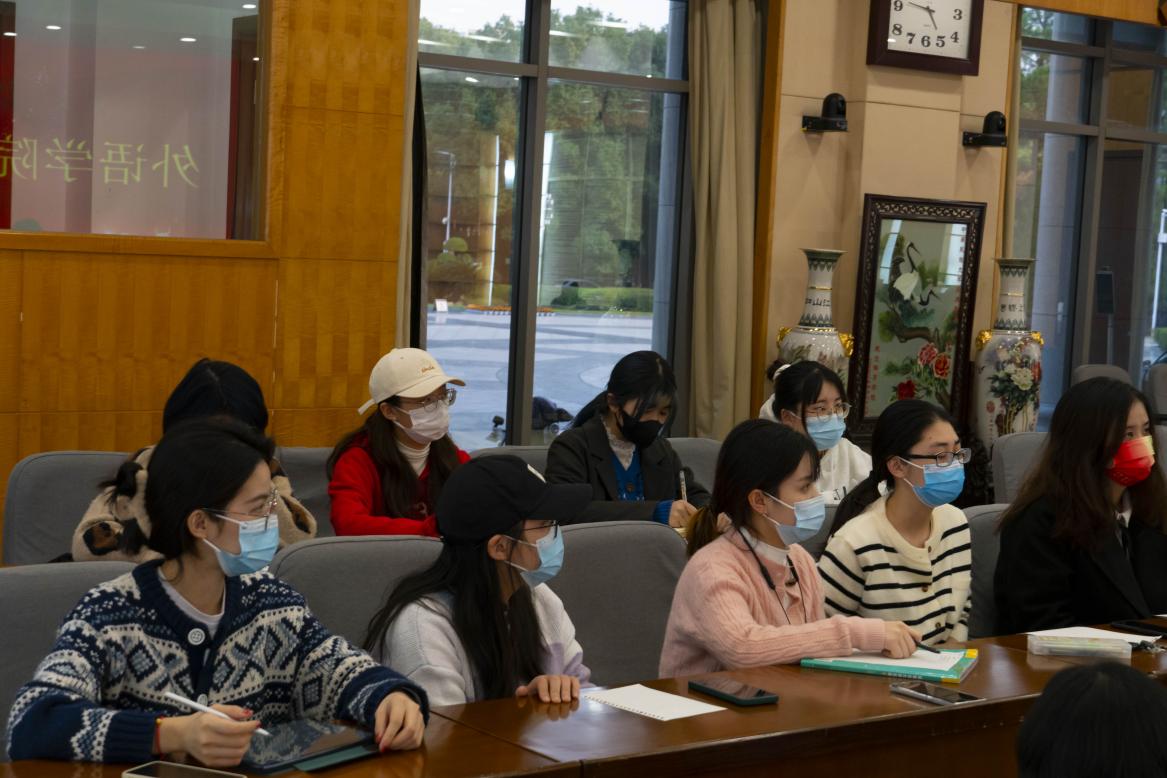 會議開始,商英專業負責人譚瑜老師提出,此次座談會的目的主要在于加強師生交流,切實了解同學們的學習、生活情況與實際需求,并據此提出針對性的建議與解決方案,以幫助同學們更好的了解信息,做好個人規劃。會議期間,各班級學生代表匯報了各班整體學習情況,并就前期收集到的學生問題征求各專業老師的意見,問題集中在課程教學、實習實踐、考研就業及證書考試等各個方面,湯茜、沈曉華、楊怏等參會老師對具體問題一一進行了解答,包括如何科學規劃學期課程學習,合理選課,如何根據不同類型的專業課程選用對應的學習方法,怎樣備考BEC等相關證書考試,學科競賽及各級社會實踐活動的重要性,畢業論文的重要注意事項,就業與考研準備的建議等等,并請參會學生代表認真記錄并傳達給班級同學。