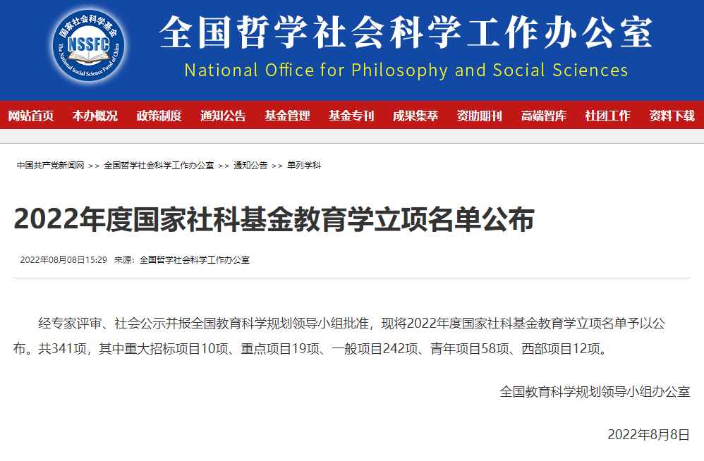 8月8日,全國教育科學規劃辦公布了全國教育科學“十四五”規劃2022年度課題立項名單,共立項583項,其中國家級項目341項,教育部各類項目242項。外語學院譚瑜副教授的課題《新時代國家教育開放戰略下高層次國際化人才跨文化能力評價體系研究》獲批全國教育科學規劃國家一般項目立項。這是譚瑜副教授第二次獲批全國教育科學規劃國家級項目。