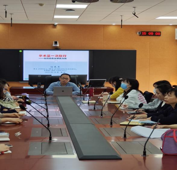 10月28日下午,廣東外語外貿大學教授、博士生導師馮光武教授為我院師生作題為“學術是一次旅行——以規約含義研究為例”專題講座,講座由院長易立新教授主持。