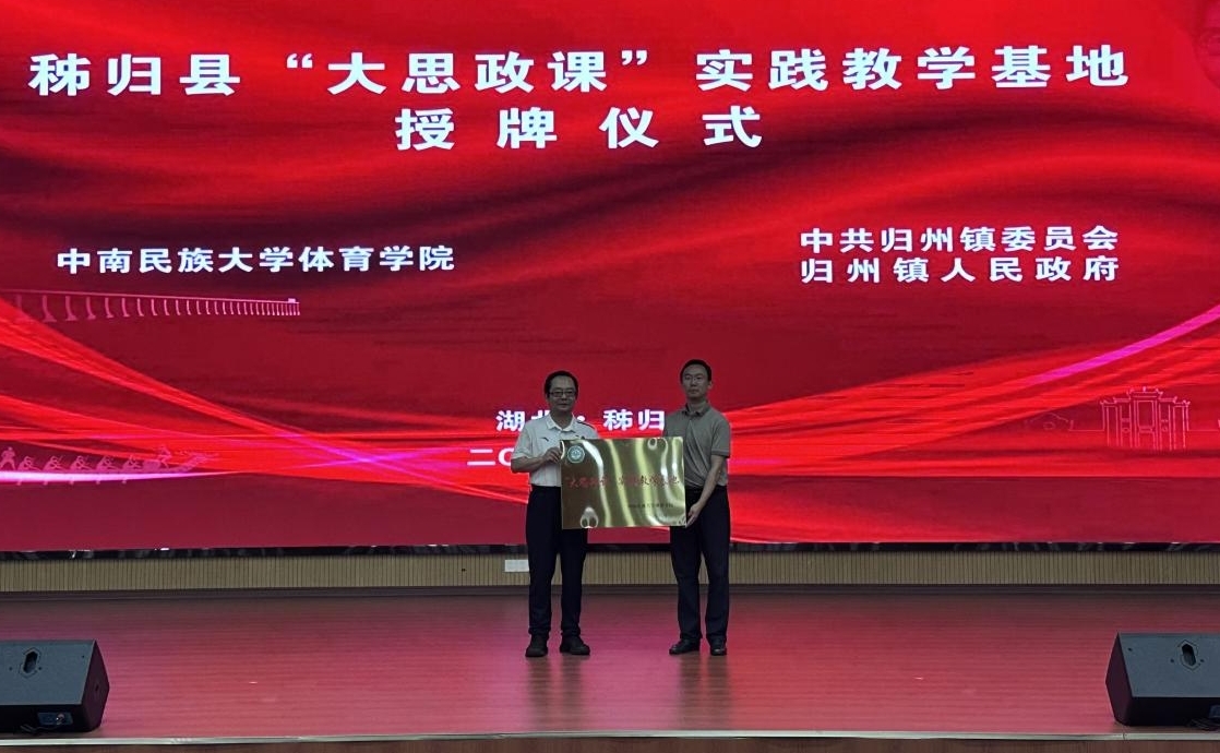 為加強大學生思想政治教育工作,體育學院與秭歸縣歸州鎮共建“大思政課”實踐教育基地,并舉行了“大思政課”實踐教學基地授牌儀式。