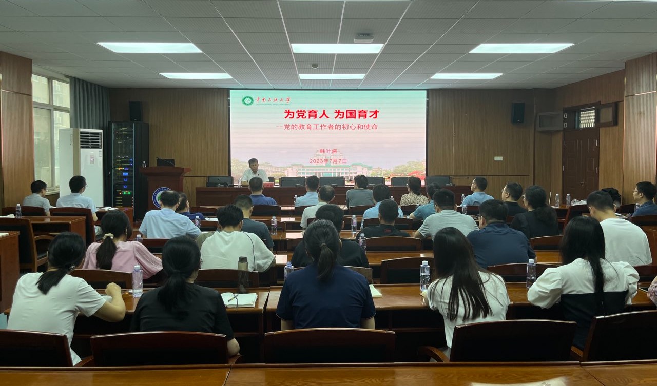 韓葉盛結(jié)合主題教育和學(xué)校工作的實(shí)際,圍繞習(xí)近平總書記對高等教育的要求、深刻把握習(xí)近平總書記對教師的期望和要求、堅(jiān)守為黨育人為國育才的初心使命等三個(gè)方面為大家上了一堂生動(dòng)的主題教育黨課。