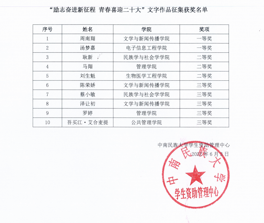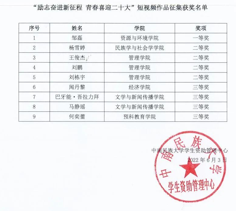 銆愬叕紺恒戝叧浜庝腑鍗楁皯鏃忓ぇ瀛?022騫村害鈥滆祫鍔╄偛浜烘枃鍖栬妭鈥濊幏濂栧悕鍗曞叕紺? |