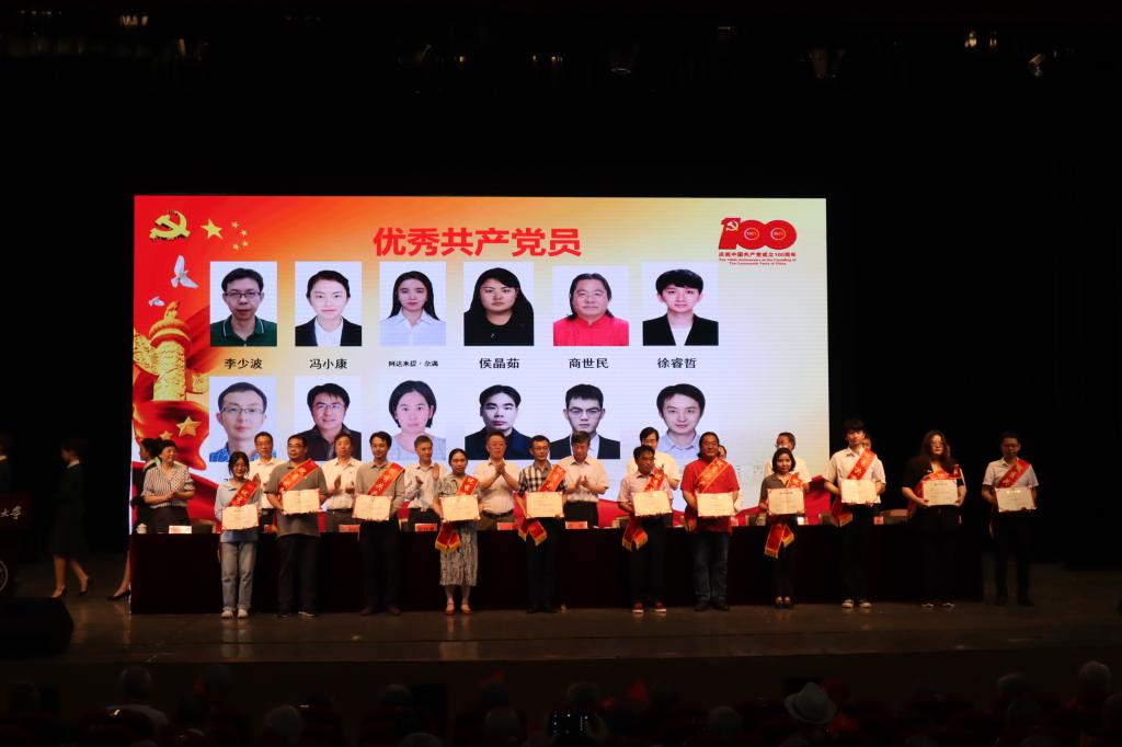 校黨委常委為受表彰的優(yōu)秀共產(chǎn)黨員頒獎(jiǎng)。馬蕊 攝