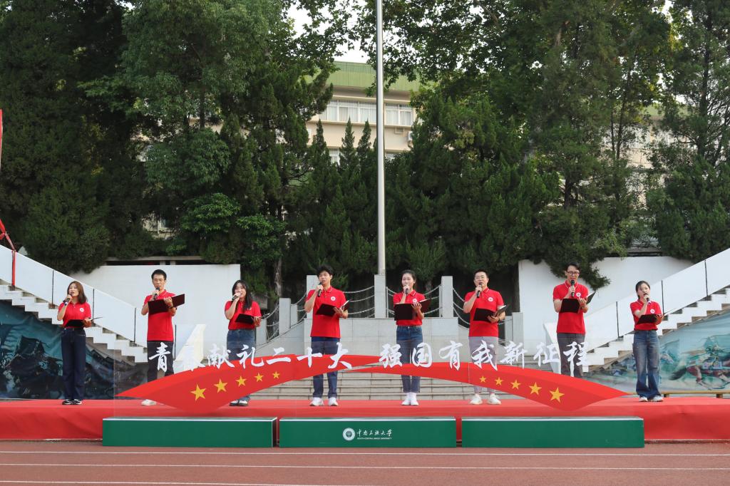 “今天,一個大寫的中國,讓人讀得光明、讀得酣暢;今天,一個騰飛的中國更讓人讀得生動、讀得自豪;這就是在世界的東方噴薄而出的,希望的中國;這就是在中國共產(chǎn)黨領(lǐng)導(dǎo)下的,輝煌的中國……”師生代表的配樂詩朗誦《青春中國》,字字鏗鏘,振奮人心。