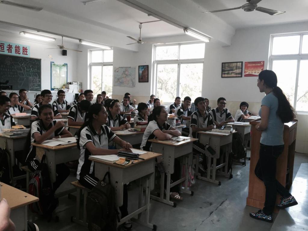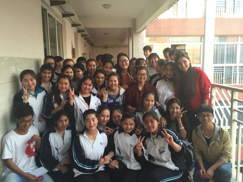 瑪日耶姆古麗在武漢東湖中學(xué)教內(nèi)高班學(xué)生說普通話。