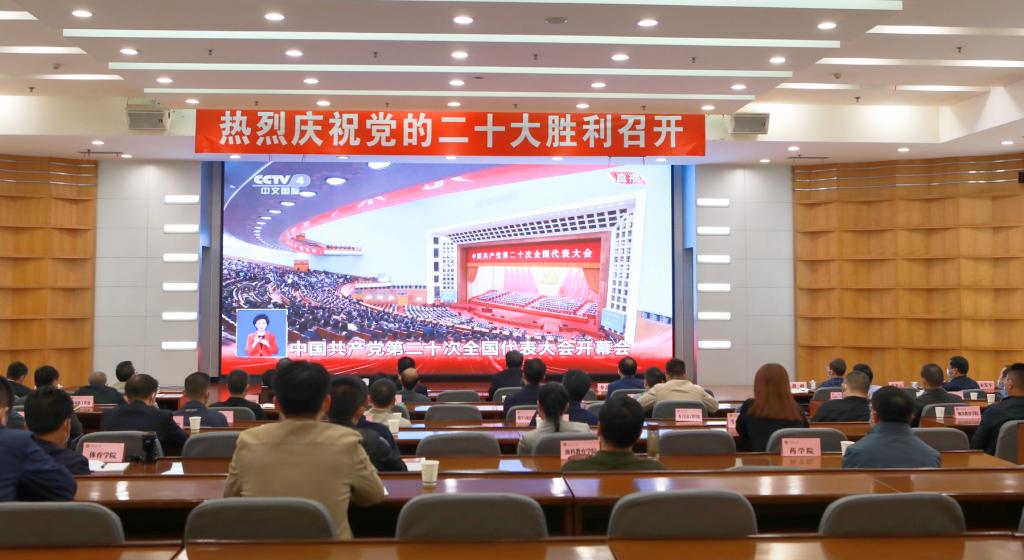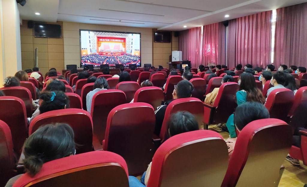 10月16日,中國共產黨第二十次全國代表大會在北京隆重開幕,我校在做好疫情防控的同時,積極有序組織各族師生收聽收看大會開幕會。全體校領導及各單位主要負責人在學術交流中心主會場,機關干部在行政樓會議室,教學單位及直屬、教輔機構師生在各單位分會場,56個民族的學生代表身著節日盛裝在潤良報告廳集中收聽收看。其他師生通過不同渠道在家中、寢室、教室收聽收看。此外,校園廣播、電子顯示屏等也對開幕會進行同步轉播,確保大會精神讓師生廣為知曉。