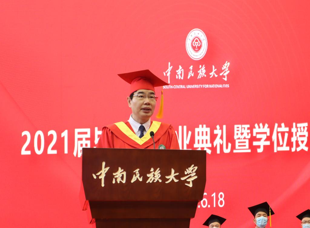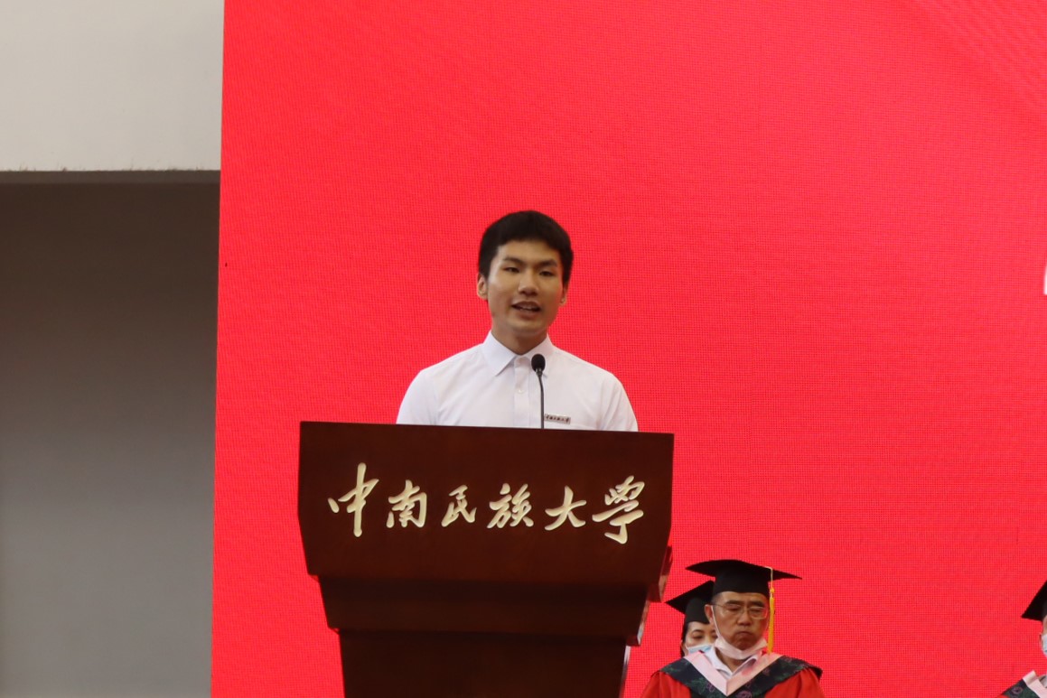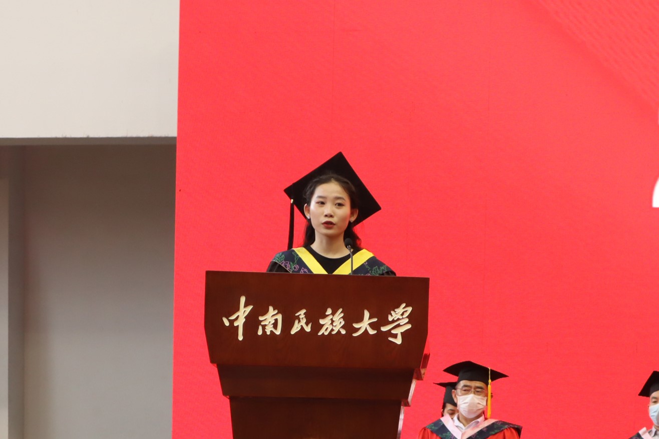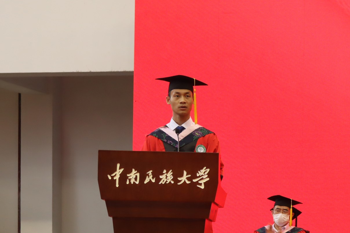 博士畢業(yè)生代表、民社學(xué)院中國少數(shù)民族史專業(yè)李超分享了關(guān)于學(xué)習(xí)與生活的三點感想:凡事多抓緊,不拖延,拒絕躺平;凡事多努力,不怕失敗,拒絕浮躁;凡事多鍛煉,不留遺憾,拒絕懶惰。碩士畢業(yè)生代表、經(jīng)濟(jì)學(xué)院區(qū)域與經(jīng)濟(jì)學(xué)專業(yè)任鵬飛對自己7年的民大生活做了一個簡短的總結(jié),表示將勇于成長,不忘民大人的初心使命;勇于堅守,銘記民大人的家國情懷;勇于付出,踐行民大人的品行修為,擔(dān)當(dāng)社會責(zé)任,實現(xiàn)個人價值。