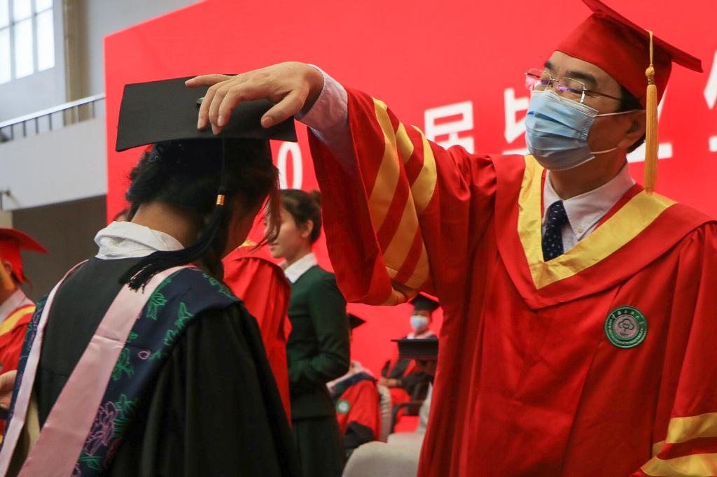 2021屆畢業(yè)典禮暨學(xué)位授予儀式現(xiàn)場。張赟 攝