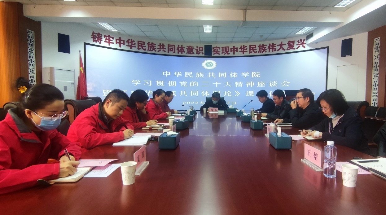 聚焦會議主題,與會人員圍繞學習宣傳貫徹黨的二十大精神、《中華民族共同體概論》課程建設、校本講義修訂完善、學科建設、理論研究、人才培養等問題進行了交流探討。大家一致認為,成立中華民族共同體學院是學校黨委貫徹落實黨中央決策部署和國家民委黨組有關要求的重要舉措,振奮人心、鼓舞士氣;要在學懂弄通做實黨的二十大精神上下功夫,將習近平新時代中國特色社會主義思想、黨的二十大精神貫穿到學院建設發展全過程、各方面,堅持以鑄牢中華民族共同體意識為主線,落實好立德樹人根本任務,著力培養堪當民族復興重任的時代新人。