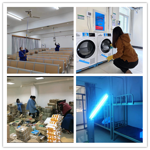 為師生們營造健康、整潔、溫馨的學習生活環境,學校開展了全方位的校園清潔消毒、安全隱患排查等工作。水電改造、校園美化、物資供應、環境整治、場館維修等工作也在各單位共同努力下有條不紊地完成。
