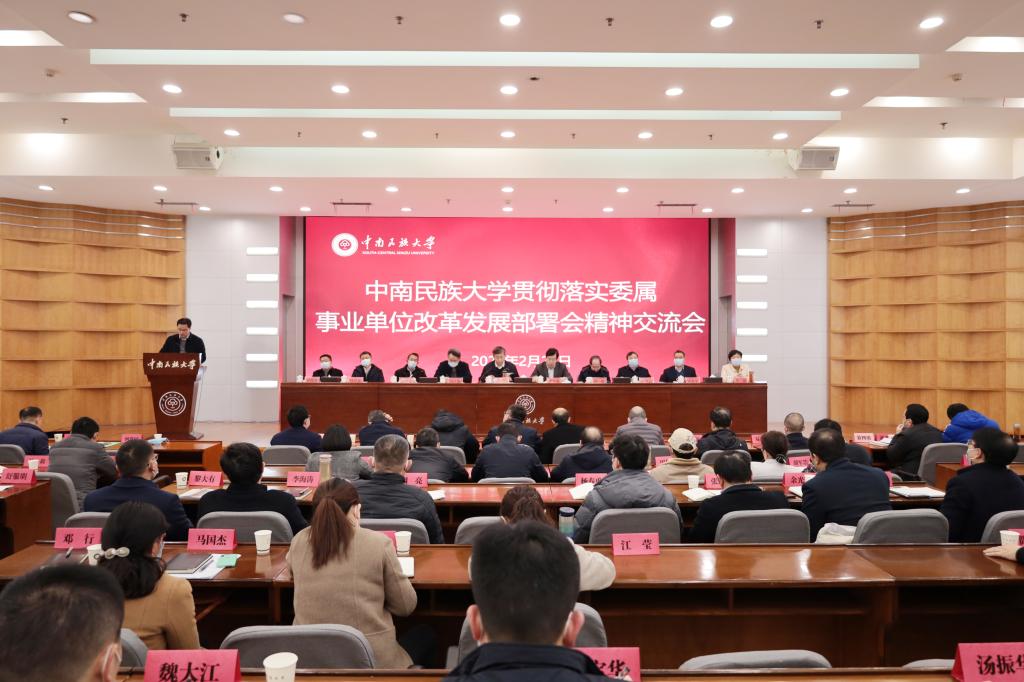 2月21日下午,我校貫徹落實國家民委事業單位改革發展部署會精神交流會在學術交流中心召開,全體校黨委常委、各單位主要負責人參加會議。校黨委書記邊境主持會議。