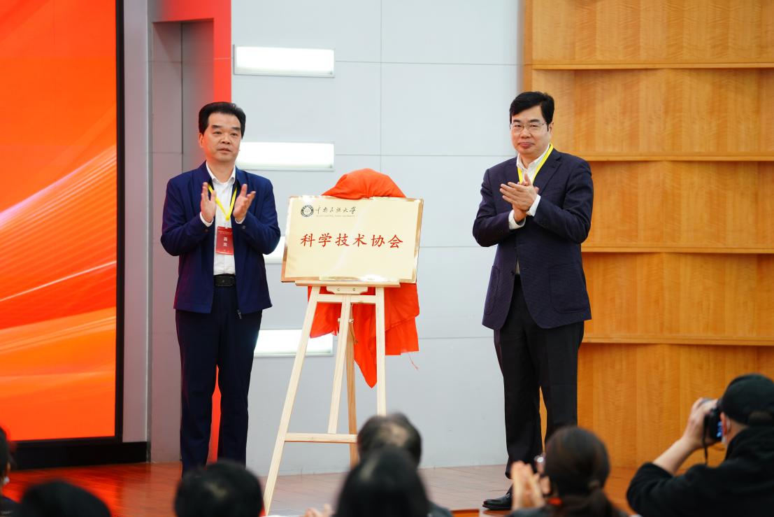 朱志斌(左)和李金林共同為校科協揭牌。 科發院供圖