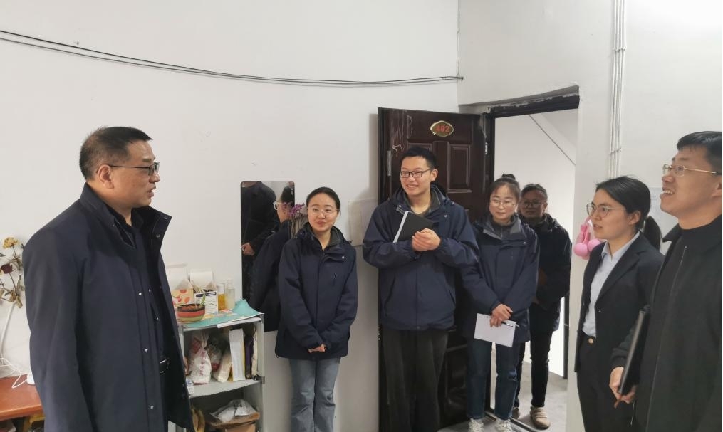 宋發軍(左一)一行走訪志愿者宿舍。 劉毅攝