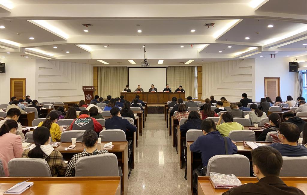 4月22日下午,學校在學術交流中心召開反電信詐騙專題學生工作會議。校黨委副書記、副校長宋發軍,學工部、保衛處、教務處相關負責人,各學院學生工作負責人、輔導員,夏清良警務室民警參加會議。會議由學工部部長李川國主持。