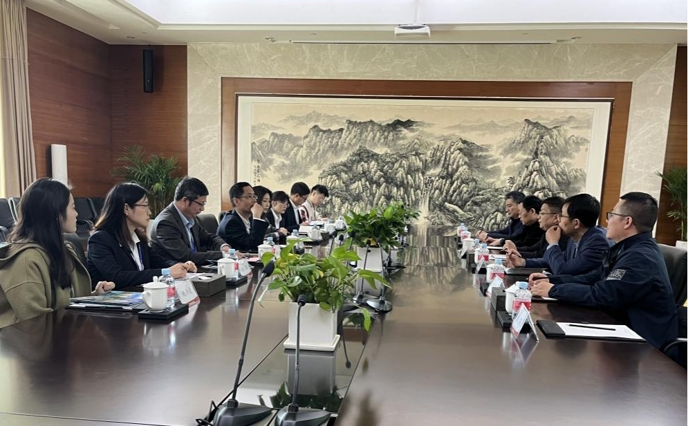 喬俊杰(前排左一)一行參觀公司。 劉華攝