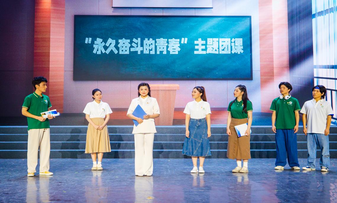 團課舞臺上,我校與華中科技大學、華中師范大學、湖北大學、武漢體育學院、咸寧職業技術學院的百余名青年學生,聯袂演繹了《團課大討論》《犧牲》《把淚焦桐成雨》《一粒好種子》《鄉村大舞臺》等短劇,生動講述了夏明翰、惲代英、何功偉、王達強等革命先烈和焦裕祿、袁隆平等奮斗典型的故事,圍繞“孔乙己的長衫”“小鎮做題家”“45度青年”等熱門話題充分討論,解疑釋惑,正面回應青年團員關于奮斗精神的困惑;現場還原秭歸縣茅坪鎮四溪村“鄉村振興大舞臺”情景,展現出湖北青年在鄉村振興中的激情和擔當。