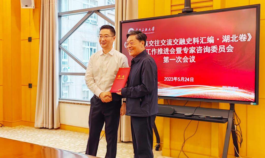 據悉,2022年6月,《史料匯編·湖北卷》編纂工作正式啟動。受湖北省委統戰部、省民宗委委托,由我校承擔《史料匯編·湖北卷》的編纂工作,副校長段超擔任總課題負責人。湖北省委、省政府主要領導把編纂工作納入重要議事日程,聽取工作匯報,作出重要批示。成立了由省委常委、統戰部部長掛帥的編纂工作領導小組,先后5次專題研究部署,每月調度督辦,協調解決有關問題。總課題組協調組織了來自湖北大學、湖北民族大學、三峽大學、貴州民族大學、武漢輕工大學、信陽師范大學及湖北各市州博物館、研究所的專家學者參與編纂工作,面向全社會征集民間史料,與部分高校、科研機構簽訂了歷史文獻共享協議,一體推進史料搜集、整理和研究,形成了一批富有成效的階段性成果。截至目前,課題組匯編輯錄史料已逾百萬字,各子課題整理史料均在20萬字左右。