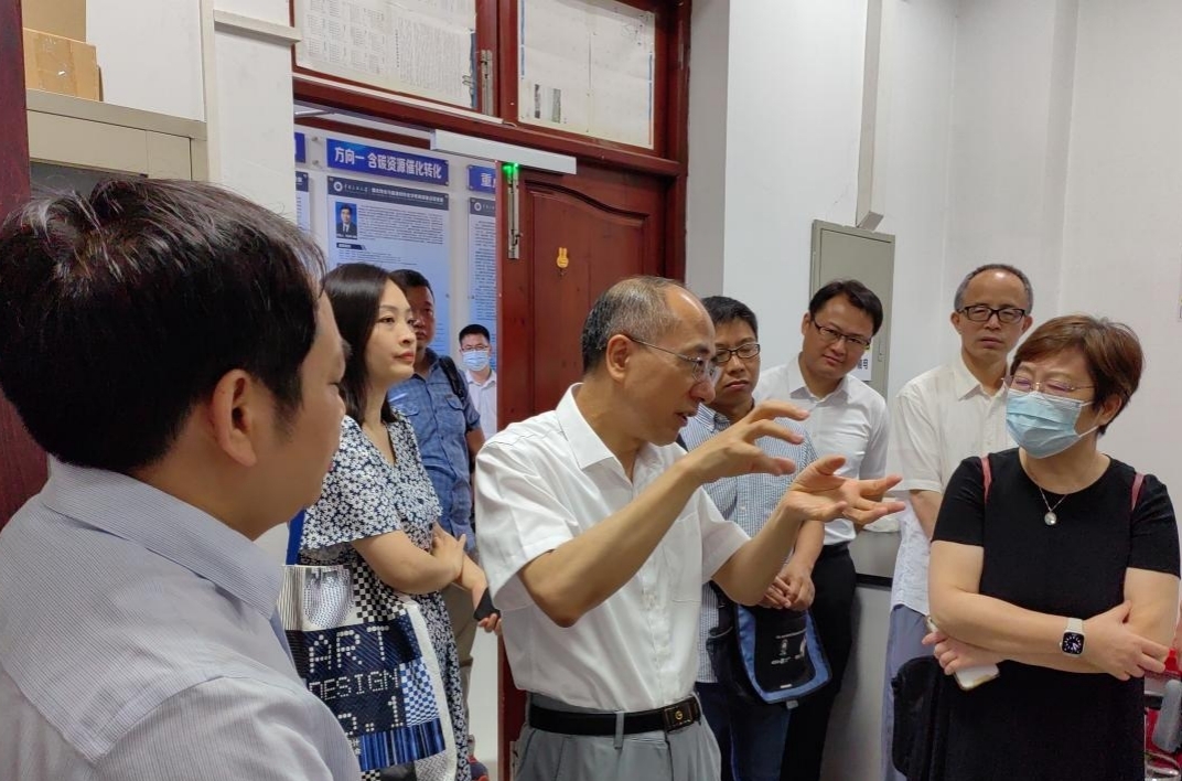 張柏青(前排中)一行在化材學院調研。 柳斌攝