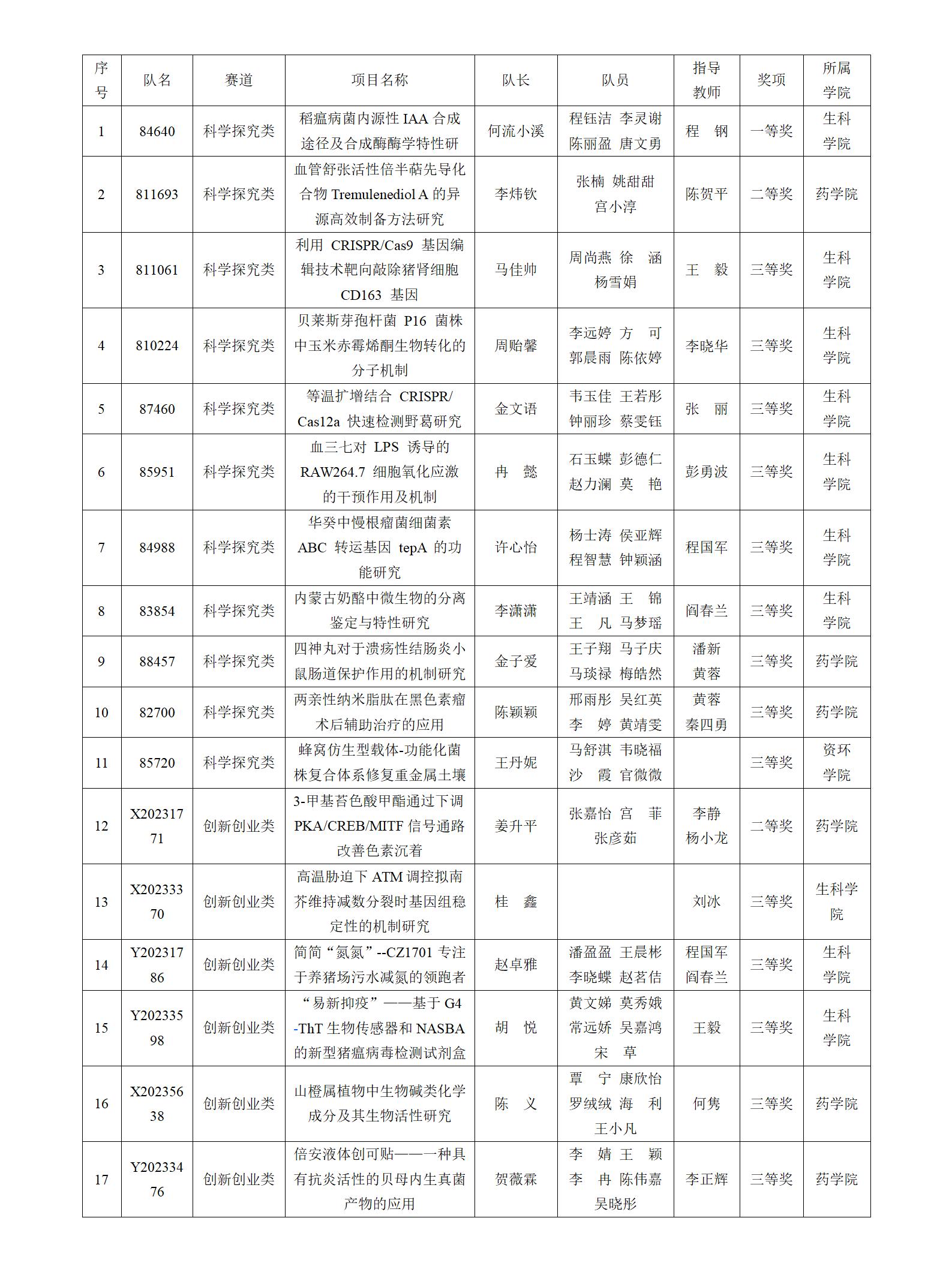 本屆大賽創新創業類賽道,我校共派出參賽隊伍20支,其中生命科學學院14支,藥學院6支。經過激烈角逐,最終獲得全國二等獎1項、三等獎5項的好成績。此外,我校還獲得全國大學生生命科學競賽國家級優秀組織獎。