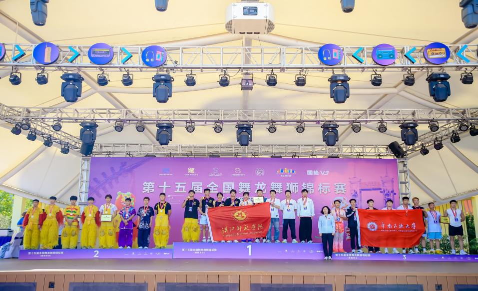 10月3日至5日,由國際龍獅運動聯合會支持,中國龍獅運動協會主辦,江蘇省社會體育管理中心、江蘇省龍獅運動協會、南京市棲霞區人民政府和南京理工大學共同承辦的第十五屆全國舞龍舞獅錦標賽(舞獅項目)在南京歡樂谷舉行。我校舞龍隊表現亮眼,除獲創意龍獅二等獎外,再獲北獅競速(男子組)第三名,北獅規定套路(男子組)第四名,北獅障礙(男子組)第四名。