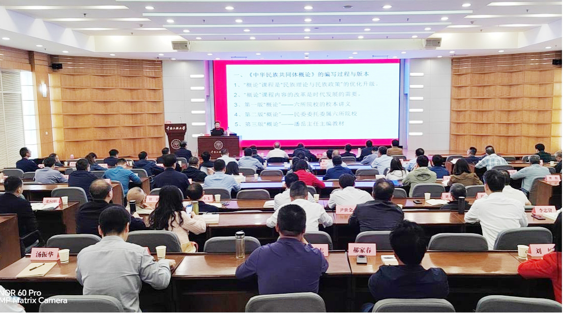 中華民族共同體學院副院長方清云教授以《推進〈中華民族共同體概論〉教學,鑄牢各族師生中華民族共同體意識》為題,從《概論》的編寫過程與版本、統編《概論》教材的特征與創新、《概論》各章節主要內容與核心問題、如何更好學習理解《概論》等4個方面作了專題輔導報告,深入解讀了《概論》教材的學理邏輯、主要內容和課標要求。