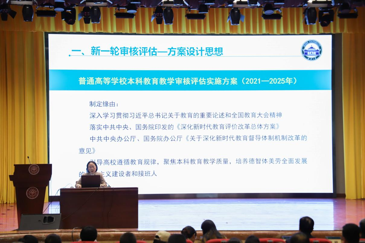 隨后,吳平教授從審核評估方案設計思想、審核評估分類方案設計、審核評估程序、審核評估指標內涵說明四個方面對新一輪審核評估方案要求進行了全面解讀,并對學校評估工作提出建議。吳平教授強調,新一輪審核評估方案要始終把本科教育教學改革作為主線,注重系統性、整體性、前瞻性、協同性綜合改革,形成全局性改革成果,推進高校在體制機制改革、課程體系改革、教學方法改革等重點領域取得新進展。