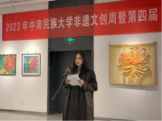 11月28日上午,2023年中南民族大學(xué)非遺文創(chuàng)周暨第四屆“最美國潮”文創(chuàng)大賽優(yōu)秀作品展開幕式在我校光谷美術(shù)館舉行,大賽獲獎(jiǎng)作者、指導(dǎo)教師以及校內(nèi)觀眾和媒體嘉賓齊聚美術(shù)館1號展廳。教務(wù)處、實(shí)驗(yàn)教學(xué)與工程訓(xùn)練中心、創(chuàng)新創(chuàng)業(yè)學(xué)院、美術(shù)學(xué)院、文學(xué)與新聞傳播學(xué)院等單位負(fù)責(zé)人出席開幕式,活動(dòng)由美術(shù)學(xué)院副院長潘俊主持。