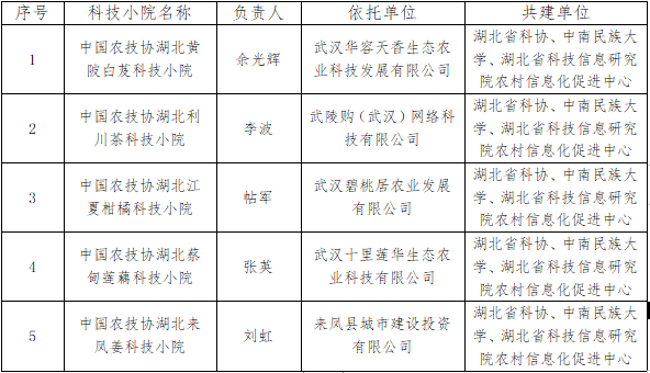 近期,中國農村專業技術協會下發了《關于同意設立“中國農村專業技術協會科技小院”的批復》(農技協發字〔2023〕23號),同意設立一批科技小院。我校聯合湖北省科協、湖北省科技信息研究院農村信息化促進中心共建的5個“科技小院”首次獲批,有效期三年。