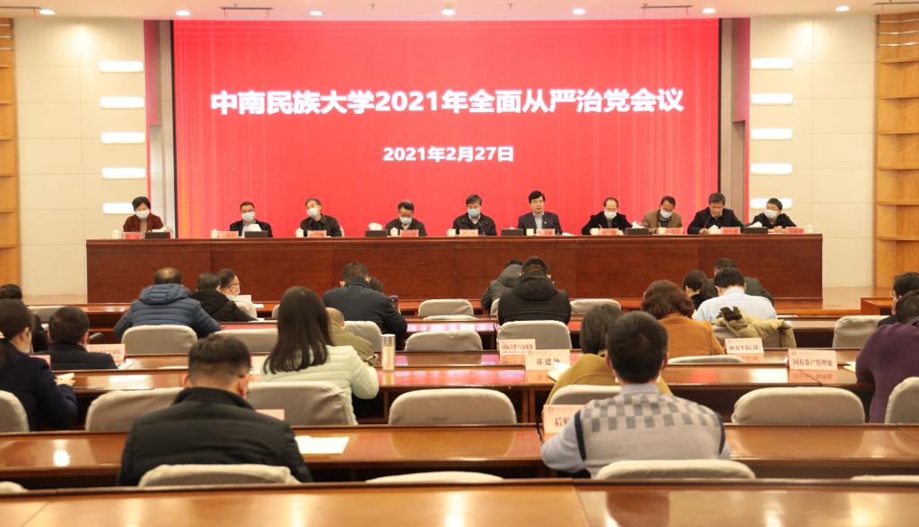 校黨委書記邊境對學校全面從嚴治黨工作進行了部署,要求各基層黨組織和全體黨員干部堅持以習近平新時代中國特色社會主義思想為指導,深入學習貫徹落實黨的十九屆五中全會、十九屆中央紀委五次全會、國家民委2021年全面從嚴治黨工作會議和湖北省紀委十一屆五次全會精神,增強“四個意識”、堅定“四個自信”、做到“兩個維護”,堅定不移抓好全面從嚴治黨;扎實開展好黨史學習教育,加強組織領導,樹立正確黨史觀,立足本職工作學以致用,注重方式方法創新,高標準高質量完成學習教育各項任務。他指出,要堅持從政治上看全面從嚴治黨,不斷提高政治判斷力、政治領悟力、政治執行力,發揮全面從嚴治黨引領保障作用,確保學校“十四五”開好局、起好步。他強調,要以強有力的政治監督,確保黨中央重大決策部署貫徹落實到位;毫不松懈糾治“四風”,堅決整治形式主義、官僚主義;堅定不移正風肅紀,一體推進不敢腐、不能腐、不想腐;完善監督體系,加強對“一把手”監督和同級監督;肩負全面從嚴治黨政治責任,切實提高管黨治黨效能。