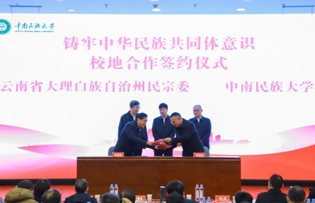 鑄牢中華民族共同體意識校地合作簽約儀式隨后舉行。校黨委副書記、副校長三朗扎西代表學校,先后與云南省大理州民宗局、湖北省隨州市委統戰部、鄂州市梁子湖區委統戰部、恩施州建始縣民宗局簽訂了校地合作協議書。