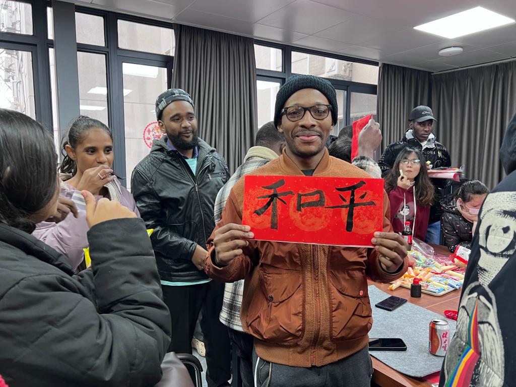 本次活動是學校為豐富留校學生寒假校園生活舉辦的系列活動之一,旨在讓學生們體會年的味道、感受家的溫暖、增進同學情誼。越南留學生陳維貴表示,“在這次迎新年活動中,我非常開心,收獲很大,不僅體驗到中國書法、剪紙等中華傳統文化魅力,還認識了許多中國朋友,熱鬧歡快的氛圍緩解了我對家鄉的思念。”盧旺達留學生夏天表示,“作為一個在中國過春節的留學生來說,今天是我期待已久的一天。今天不僅是我第一次過中國的小年,也是第一次和中國同學一起玩中國傳統游戲,我感受到了濃濃的中國年味,感謝學校給我們提供這樣寶貴的機會。”剛果(金)留學生魯安用毛筆寫下了漢字“和平”,并表示,“非常高興能夠參加學校組織的迎新年活動,在民大的學習和生活讓我受益匪淺,我時刻可以感受到民大和諧、平安的氛圍,祝愿世界和平、明天更加美好。”文學與新聞傳播學院學生蔡有發表示,“我在此次活動中的最大感受就是歡樂和溫馨。同學們在初次見面時的相互問候、游戲中的互幫互助、寫對聯剪窗花的互動交流中,增進了彼此的了解和友誼。從每一位老師和同學臉上洋溢的幸福笑容中,我感受到濃濃的年味和家的溫暖。”