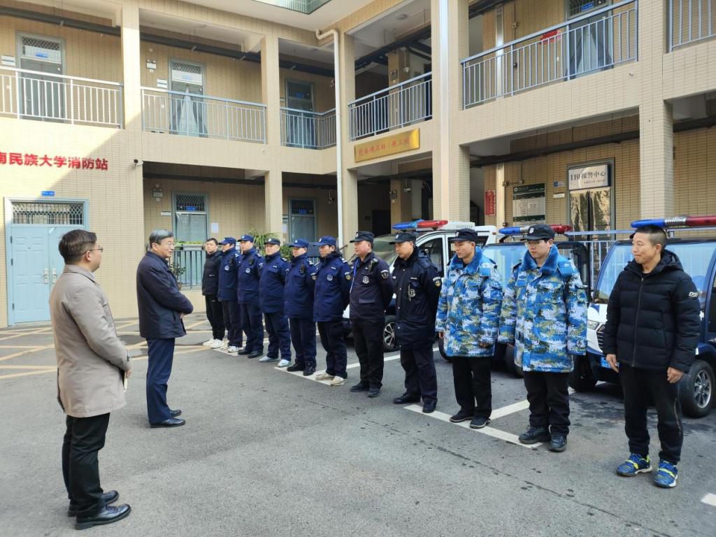 在校園110報(bào)警指揮中心、監(jiān)控室和門崗值班室,邊境向節(jié)日期間堅(jiān)守崗位的校衛(wèi)隊(duì)員和門崗隊(duì)員表示感謝,并致以新春問候。他表示,春節(jié)期間,保衛(wèi)戰(zhàn)線成員堅(jiān)守崗位,舍小家顧大家,用自己的辛苦換來校園安寧,為維護(hù)師生安全、營造和諧穩(wěn)定校園治安環(huán)境做出了貢獻(xiàn)。希望大家繼續(xù)發(fā)揚(yáng)優(yōu)良傳統(tǒng),以高度的責(zé)任感和使命感,扎實(shí)做好校園安全保衛(wèi)工作。