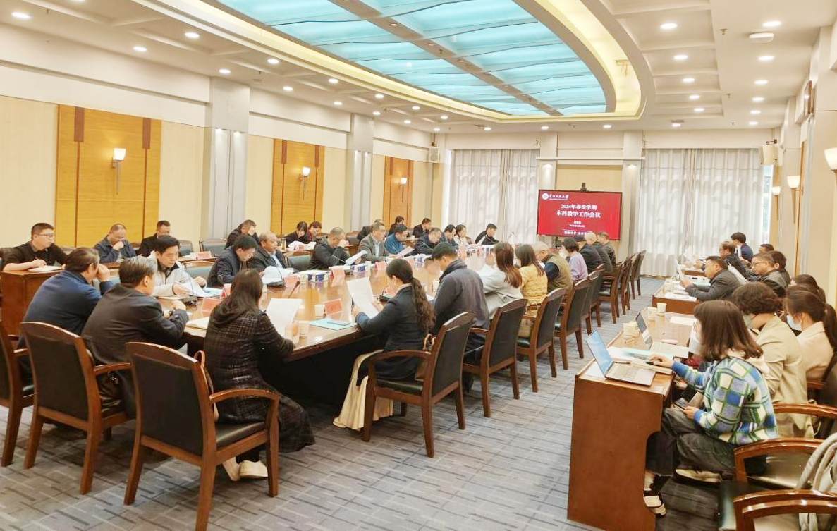教務(wù)處處長胡軍浩分享了教務(wù)處“服務(wù)師生、規(guī)范管理、提質(zhì)增效、強(qiáng)化落實(shí)”的工作理念,全面總結(jié)了2023年本科教學(xué)工作取得的成績和存在的不足,提出了改進(jìn)舉措,并從本科教學(xué)制度“廢改立”、課堂教學(xué)質(zhì)量提升、審核評估自評自建、中華民族共同體意識教育、專業(yè)調(diào)整優(yōu)化和轉(zhuǎn)型升級、課程教材建設(shè)、基層教學(xué)組織建設(shè)、實(shí)習(xí)實(shí)踐提質(zhì)增效、本科教學(xué)大討論、國家語言文字推廣基地建設(shè)等10個方面對2024年春季學(xué)校本科教學(xué)重點(diǎn)工作進(jìn)行了部署。教務(wù)處副處長劉晶通報(bào)了2023年秋季學(xué)期本科教學(xué)質(zhì)量監(jiān)測情況,以及評教數(shù)據(jù)、督導(dǎo)領(lǐng)導(dǎo)同行聽課情況、期中教學(xué)檢查情況、聽課巡課工作反饋等方面情況,并就本學(xué)期審核評估迎評促建工作作了安排。