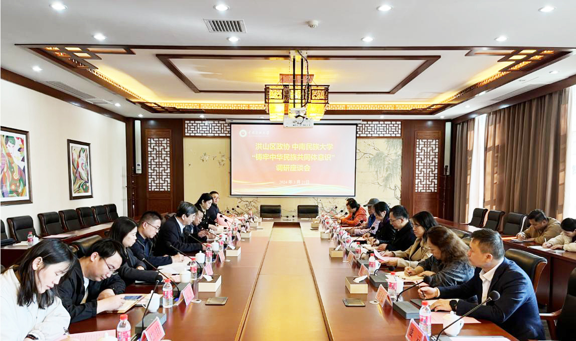 座談會上,洪山區統戰部負責人介紹了本次調研的目的,以及全區鑄牢中華民族共同體意識教育開展情況。劉勁松表示,希望通過此次調研汲取中南民族大學在鑄牢中華民族共同體意識工作的主要做法與經驗,也希望學校繼續充分發揮教育管理優勢和學科人才優勢,助力洪山區創建全國“民族團結進步示范區”。