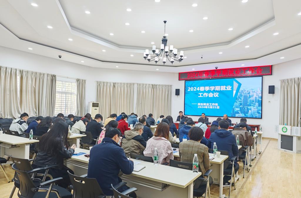 為全面落實黨中央、國務院關于高校畢業生就業創業工作的決策部署和湖北省委、省政府工作要求,扎實推進教育部“2024屆全國普通高校畢業生就業創業促進行動”,3月21日上午,學校召開春季學期就業工作會。校黨委副書記、副校長宋發軍,各學院分管就業工作副書記、畢業年級輔導員參加會議。會議由招生就業處處長舒服明主持。