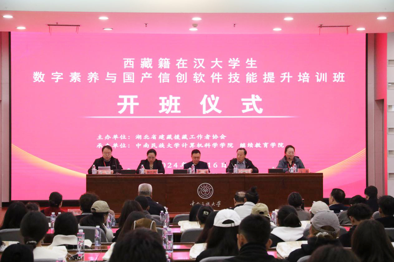 近日,湖北省建藏援藏工作者協會與我校繼續教育學院、計算機科學學院聯合舉辦針對藏籍在漢大學生的數字素養與國產信創軟件技能培訓班。本期培訓于3月16日在我校學術交流中心國際廳舉行開班儀式,整個培訓歷時一個多月。據湖北省建藏援藏工作者協會會長譚徽在介紹,本期培訓主題是經過反復考量才確定下來的。協會先是在藏籍大學生中征集意見,然后召集學生代表開了三次座談會,最終確定了數字素養與國產信創軟件技能培訓這個主題。繼續教育學院和計算機科學學院作為本期培訓班的承辦單位,對培訓課程的安排進行了多次調研與優化。