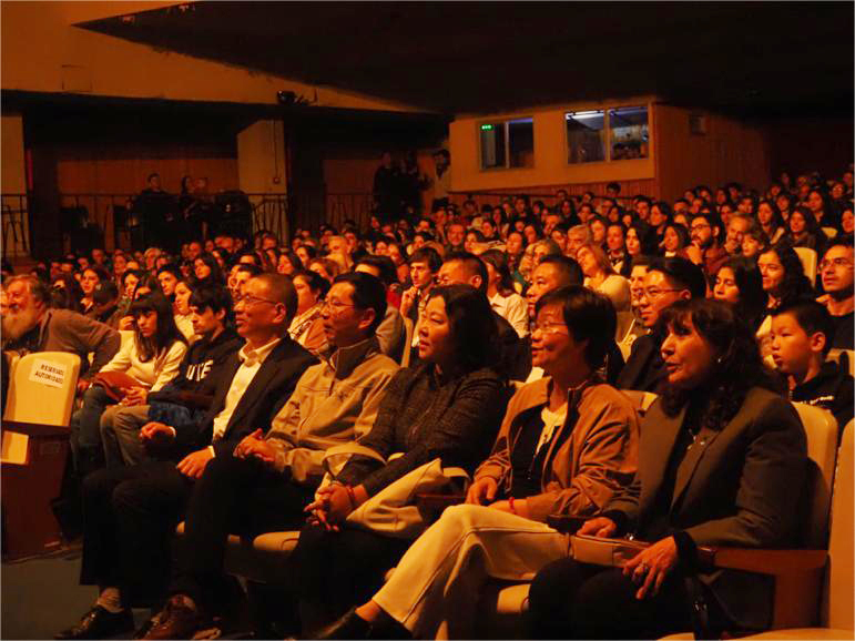 我校黨委副書記、副校長宋發軍一行18人,中國駐阿根廷大使館文化處官員黃康益,布宜諾斯艾利斯大學國際處處長Iván Bigas、孔子學院中方院長張奇、國際處戰略事務項目官員Maia Hoffman、孔子學院教學文化主任Pablo Cullinan,科爾多瓦大學國際處處長(副校級)Elena Perez、發展規劃處處長兼孔子學院理事長Marcelo、孔子學院中方院長陳林、孔子學院外方院長Mirian Carballo,與1700余名師生民眾到場觀看。演出現場座無虛席。