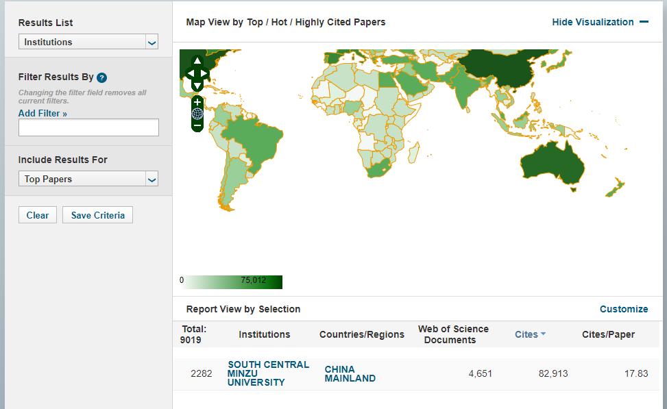ESI最新數(shù)據(jù)顯示,本期共有9019所研究機構(gòu)進入全球前1%。我校發(fā)文4651篇,總被引頻次82913次,國際排名第2282位,高被引論文64篇,熱點論文3篇。目前我校共有化學(xué)、工程學(xué)、材料科學(xué)、環(huán)境與生態(tài)學(xué)4個學(xué)科進入ESI前百分之一,其全球排位分別為710/1905≈37.27%、1289/2429≈53.07%、939/1391≈67.51%、1842/1872≈98.40%(注:百分比排位=機構(gòu)排名/總機構(gòu)數(shù),該指標(biāo)越小說明機構(gòu)排名越靠前)。