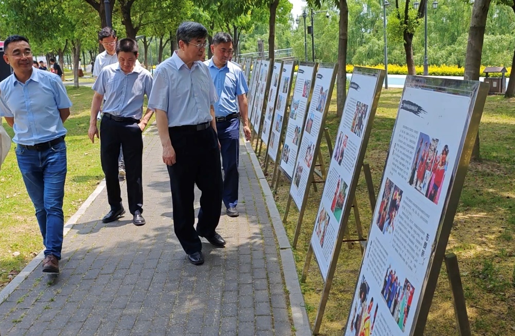 校領(lǐng)導(dǎo)對(duì)我校協(xié)辦的相關(guān)展覽作細(xì)致指導(dǎo)。 黨委宣傳部供圖