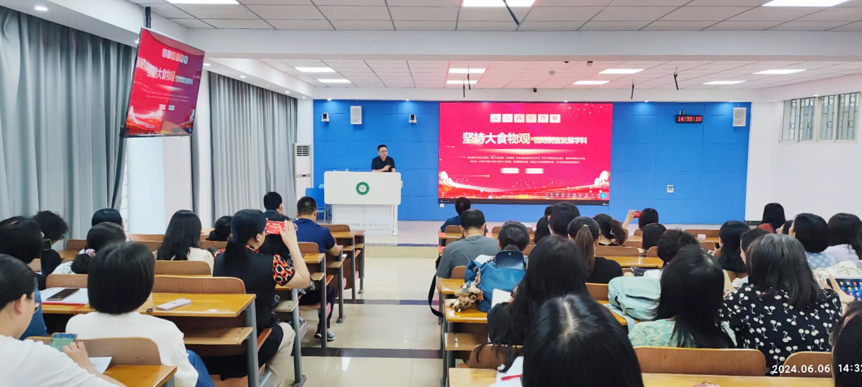 覃瑞以《堅持大食物觀 因地制宜發展學科》為題,從科技創新、赴疆科研、資源保護、生態保護等方面,闡釋了堅持大食物觀的必由之路、實踐之路、戰略之路和發展之路,為全體教職工上了一堂精彩而意義深刻的黨課。